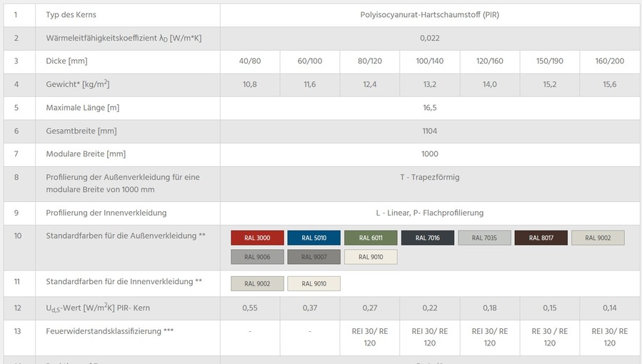 Sandwichplatten - Technische Daten | Belastungstabellen | Farben >>